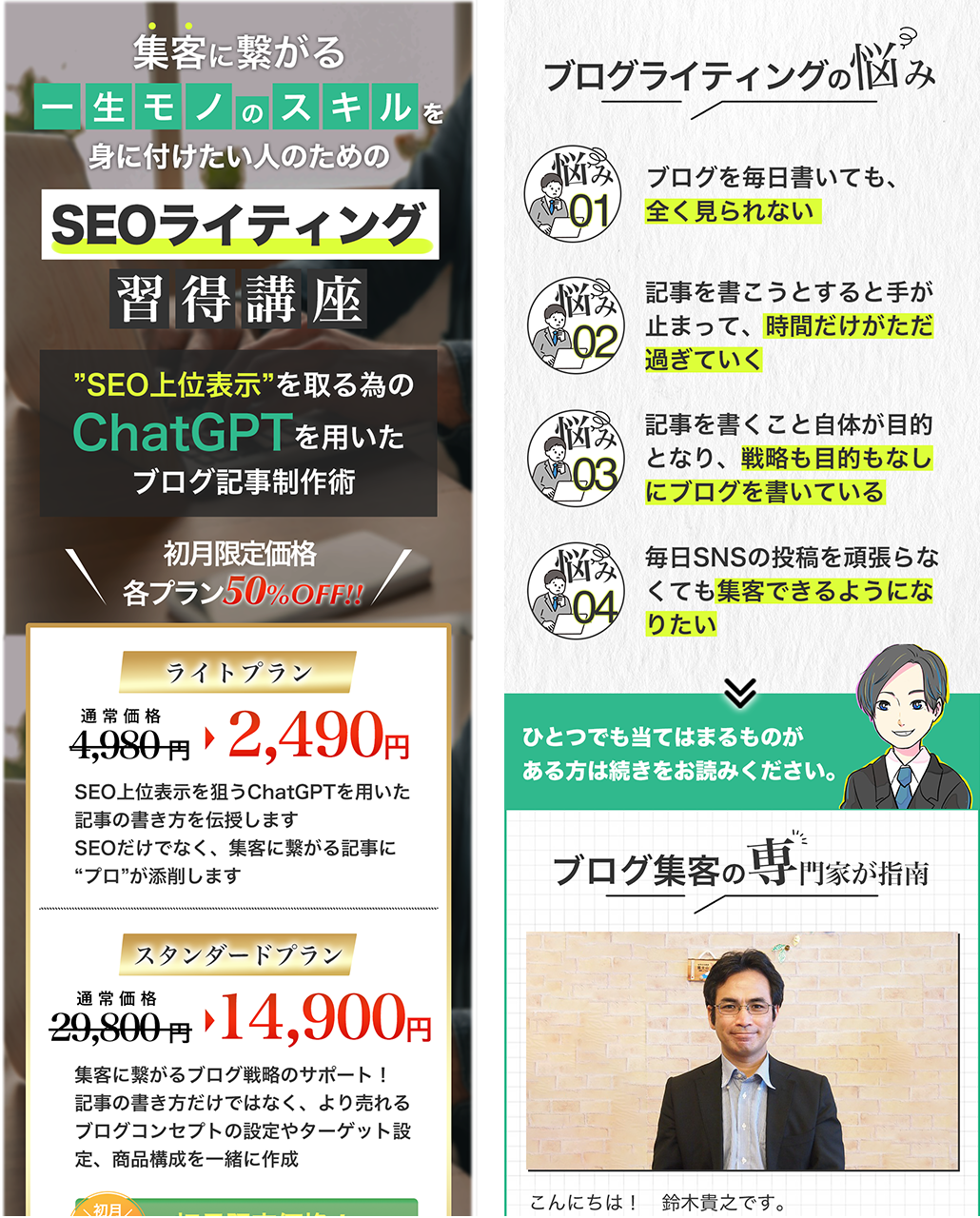 SEOライティング習得講座への案内用ランディングページを制作。